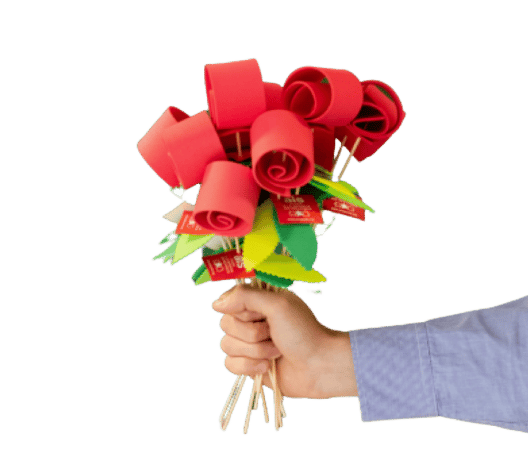 Ram de 12 roses, una per cada mes, fetes a mà per fer d'aquest Sant Jordi una festa que aporti solidaritat a la societat.